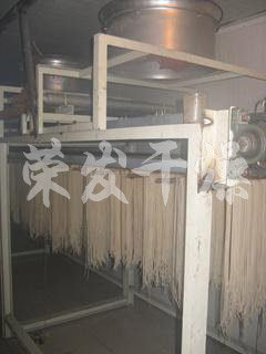 初掛上架以控水為主,不要輕易亂動(dòng),避免碎條過多。20分鐘后,輕輕將粉絲攤開,占滿粉竿空余位置。晾至四五成干時(shí),將并條和下邊粉絲結(jié)輕輕揉搓松動(dòng)使其分離散開。晾至七八成干時(shí),將粉竿取下?lián)Q方向,直至粉絲中含水14%時(shí)為止。